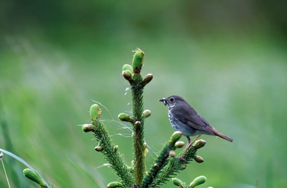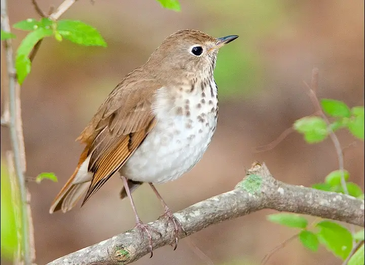 The hermit thrush breeds in New Hampshire and is one of the first migrating birds to return to woodlands in the spring.