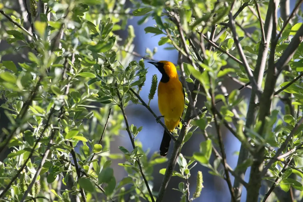 The hooded oriole is a very social bird and often joins flocks of other birds, like Bullock’s oriole.