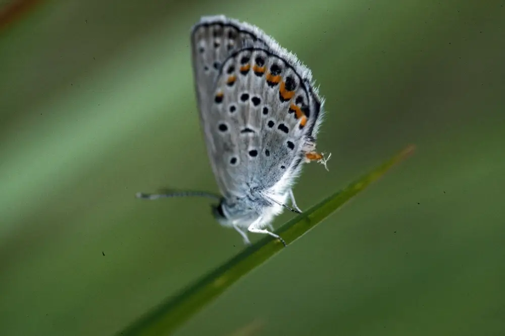 The Karner blue butterfly is a tiny, dime-sized butterfly with a wingspan of only about one inch (2.54 cm) across.