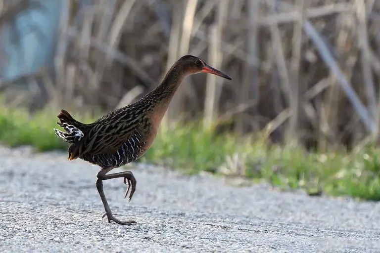The king rail prefers freshwater marshes but will use brackish (mixed salt and freshwater) wetlands as well. It is important that the King Rail’s habitat has grasses, sedges, rushes, and cattails to use as cover during nesting.