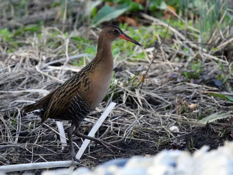 The king rail is a chicken-sized marsh bird. It is 15.0-18.9 inches (38-48 cm) in length with a wingspan of 19.7-20.5 inches (50-52 cm).