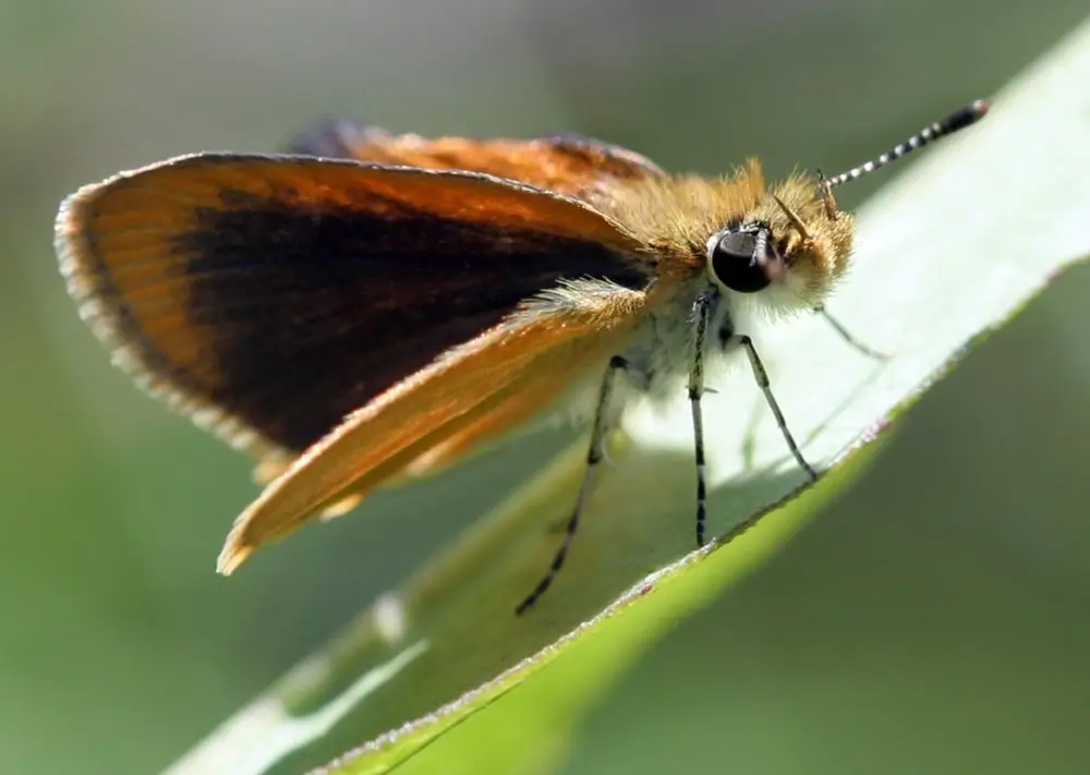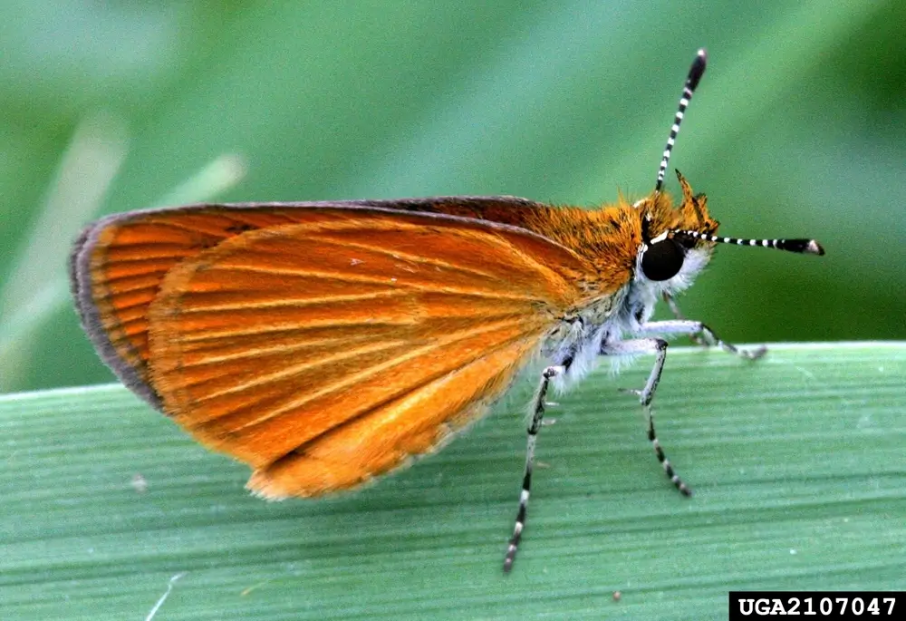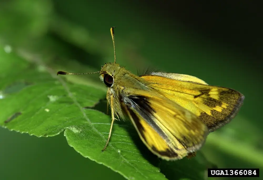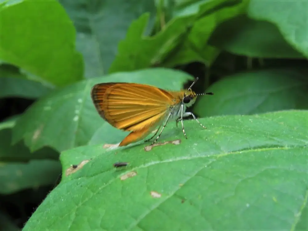 The least skipper has a wingspan of 0.75 – 1 inch (1.9-2.5 cm). It has short antennae and rounded wings.