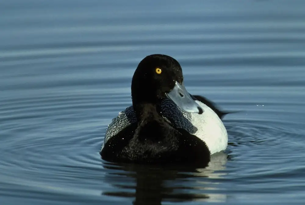 The lesser scaup looks very similar to the greater scaup. The greater scaup is a little larger than the lesser scaup; its head is more rounded, and the black tip on the end of the bill is larger.