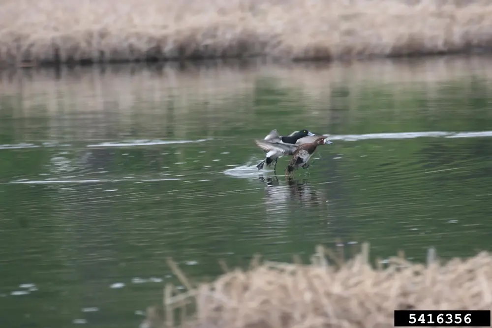 The lesser scaup dives for clams, snails, crustaceans, and aquatic insects. It also eats seeds and aquatic plants.