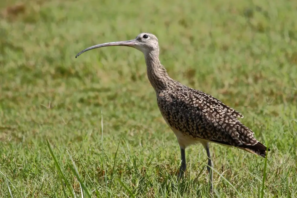 It has speckled brown wings, a lighter brown head and chest, and a very long, curved bill. Both the male and female long-billed curlew look alike.