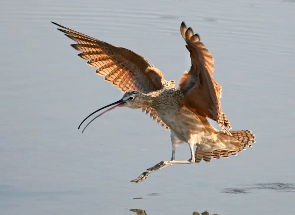 The long-billed curlew flies in formation and feeds in flocks.
