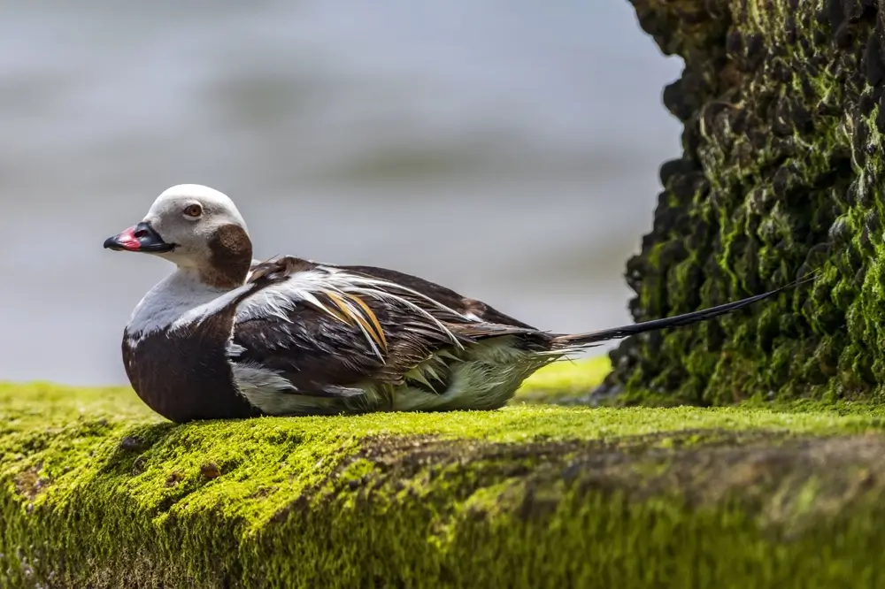 The long-tailed duck uses its wings to propel itself under the water and can dive to depths of up to 200 feet (61 m).