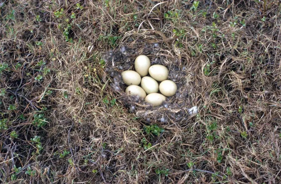 Male and female pairs form before or during migration. The female lays 6-11 eggs in a depression in the ground that is close to water and well hidden by vegetation. The male leaves the female once incubation begins.