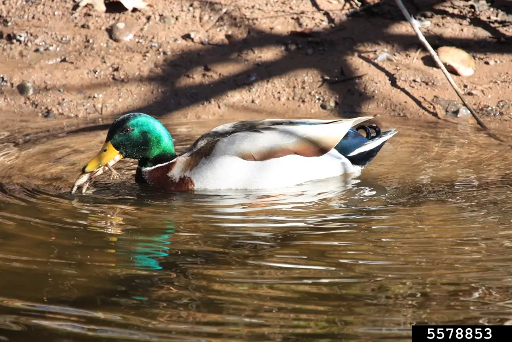 Most of the mallard’s diet is made up of plants. It eats the seeds of grasses and sedges and the leaves, stems, and seeds of aquatic plants. It occasionally eats insects, crustaceans, and mollusks – especially when it is young.