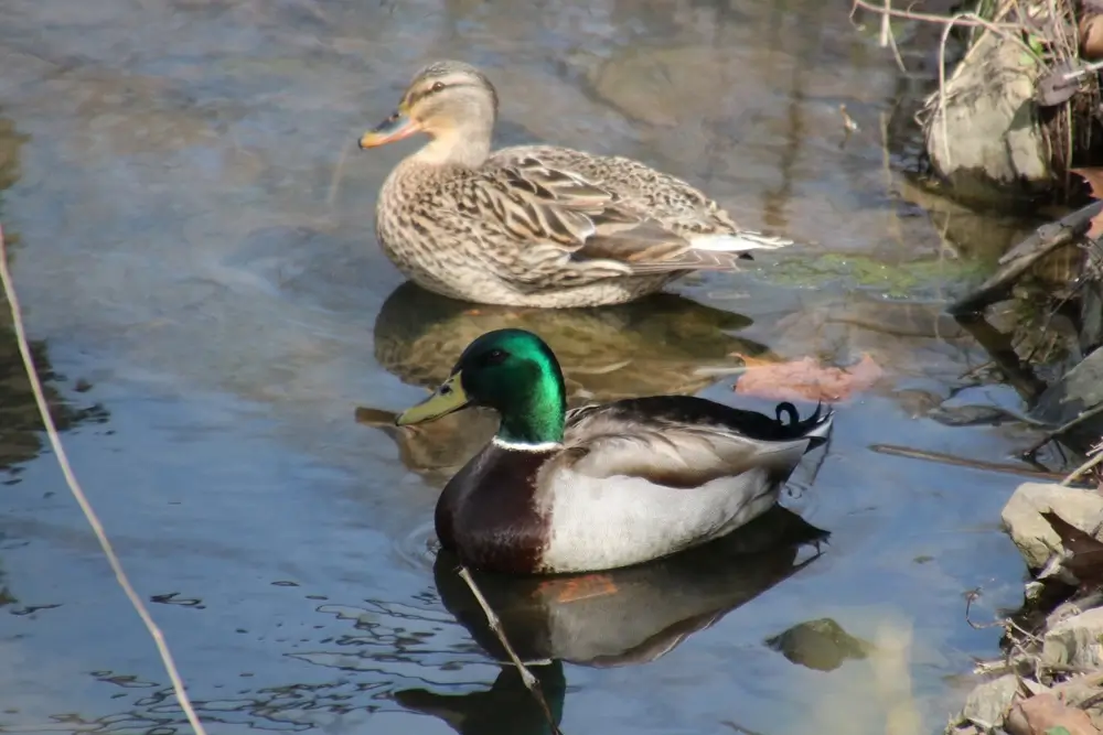 Mallard courtship begins in the fall, and by winter, pairs have formed. If a pair is part of a migrating group, the pair migrates to the female’s territory.