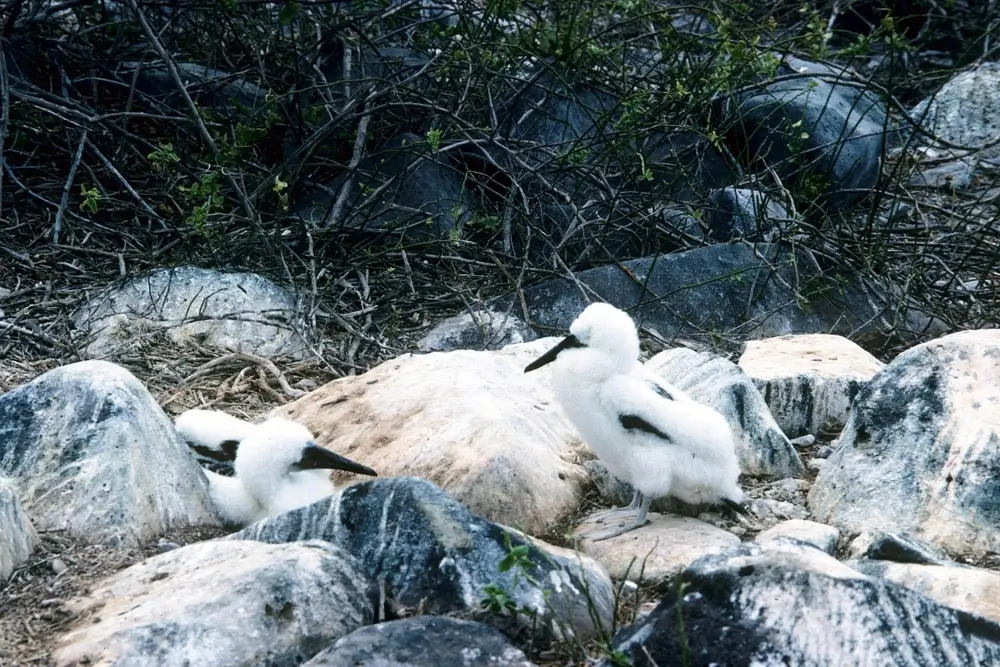If masked boobies lay two eggs, usually only one will hatch. In fact, masked booby eggs hatch only about 60 percent of the time. The second egg may be an “insurance egg” that raises the chances of at least one egg hatching. If the second egg hatches, the older chick often forces the younger chick out of the nest where it will probably die from heat or predators.