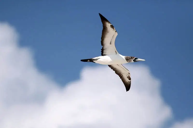 The masked booby plunges head-first into the ocean to catch flying fish and squid.