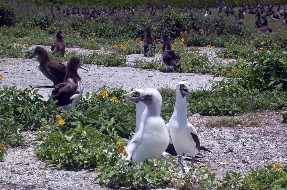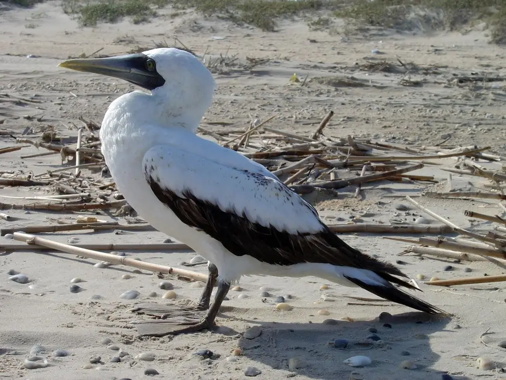 The masked booby lives on the open ocean. It only comes on land to breed and raise its young.