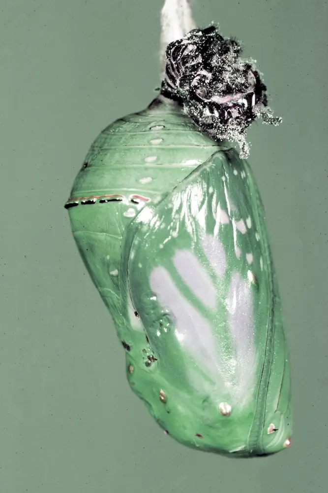As the monarchs migrate to their summer territory, the female lays her eggs on milkweed plants. The eggs take 3-15 days to hatch into larvae. The larvae feed on the milkweed for about two weeks. At the end of the two weeks, they attach themselves to a twig, shed their outer skin, and change into a chrysalis. This happens in just a few hours. In two weeks, a full-grown monarch emerges.