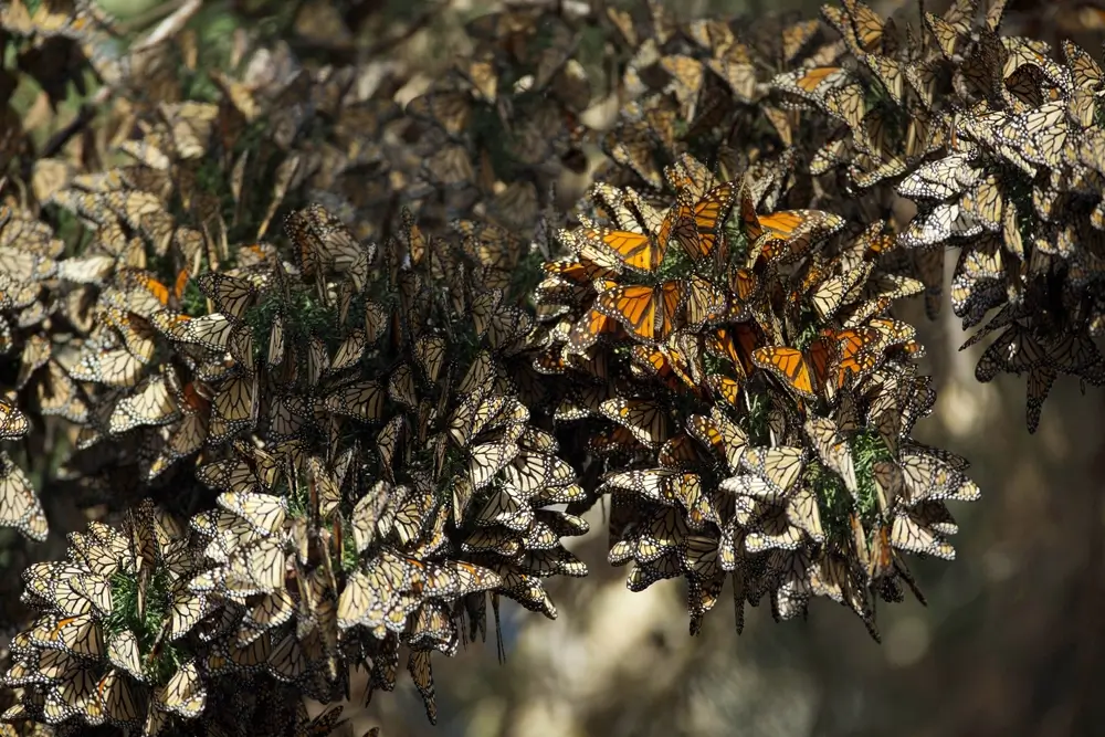 When they first arrive at their winter locations in November, monarchs gather into clusters in the trees. By December and January, when the weather is at its coldest, the monarchs are tightly packed into dense clusters of hundreds or even thousands of butterflies. By mid-February, these clusters of butterflies begin to break up, and the monarchs begin to gather nectar. In the spring, they reproduce, and their offspring make the return trip to the north.