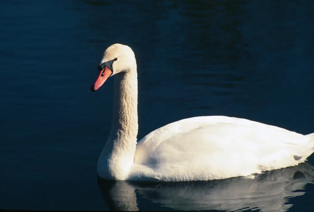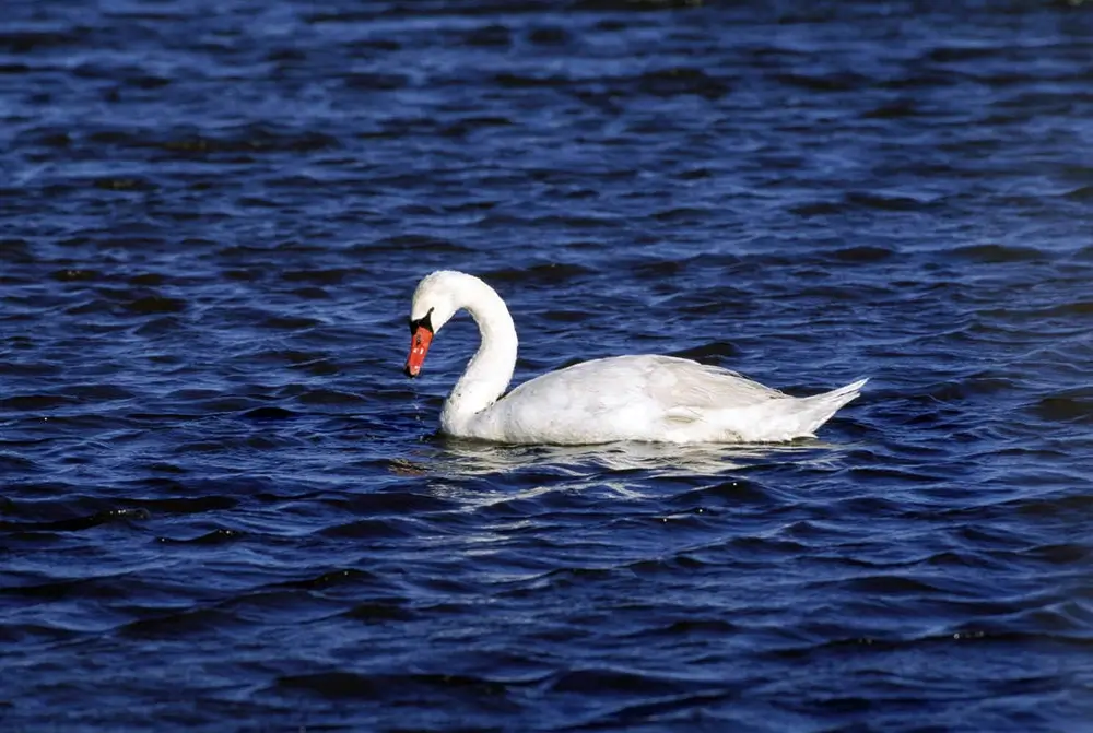 When the mute swan swims, it curves its neck into an S-shape and points its bill down. Other swan species, like the tundra swan, hold their necks up straight when they swim.