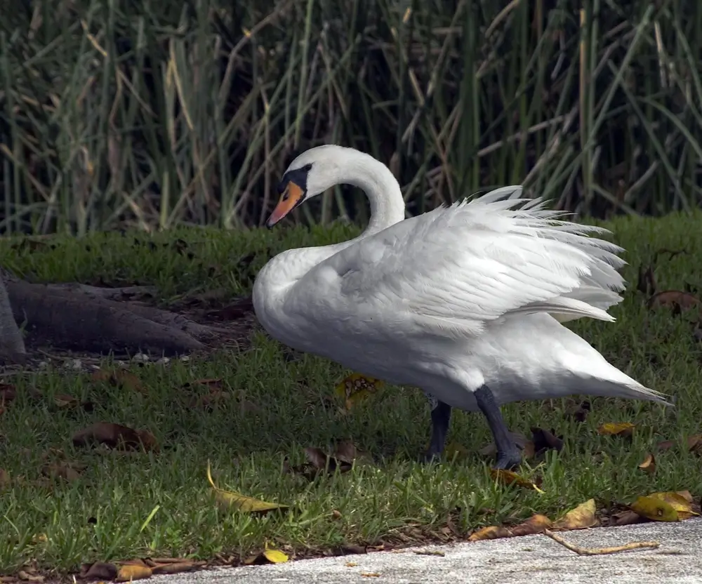 Male swans are very territorial and chase intruders away. They arch their wings over their backs and charge at the intruder.