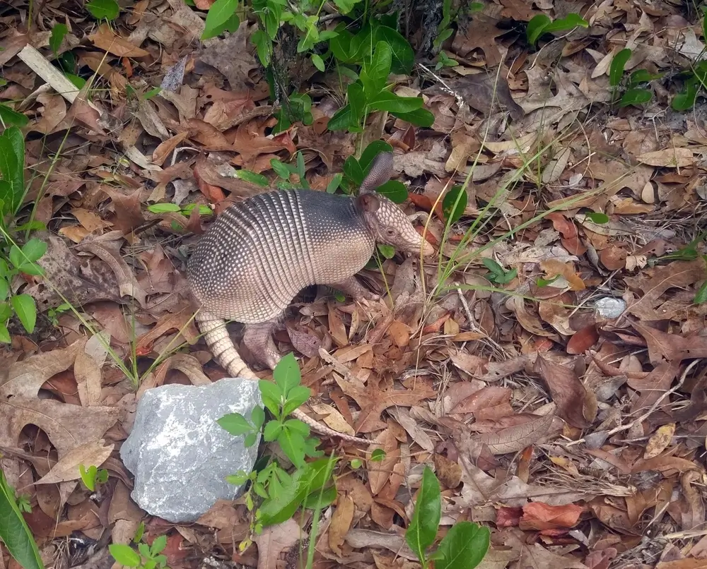 The nine-banded armadillo lives in bottomland hardwood forests, scrub, and brushlands. It prefers areas with soft soil that it can burrow into.