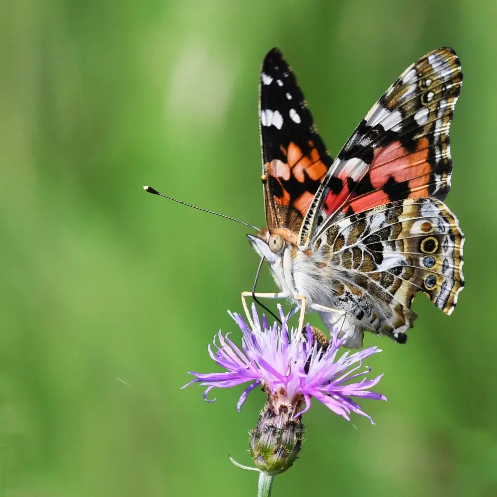 The painted lady is also called the thistle butterfly because it likes thistles and the cosmopolitan butterfly because it is found all over the world.