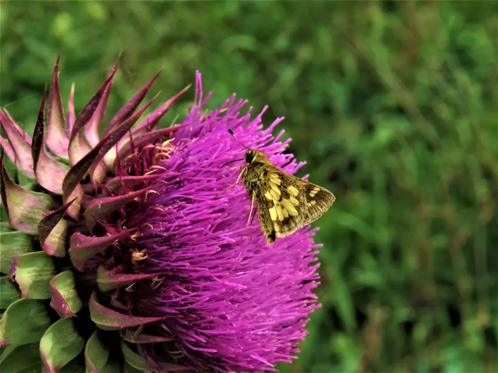 Peck’s skipper is found in open grassy areas like meadows, marshes, lawns, and roadsides.