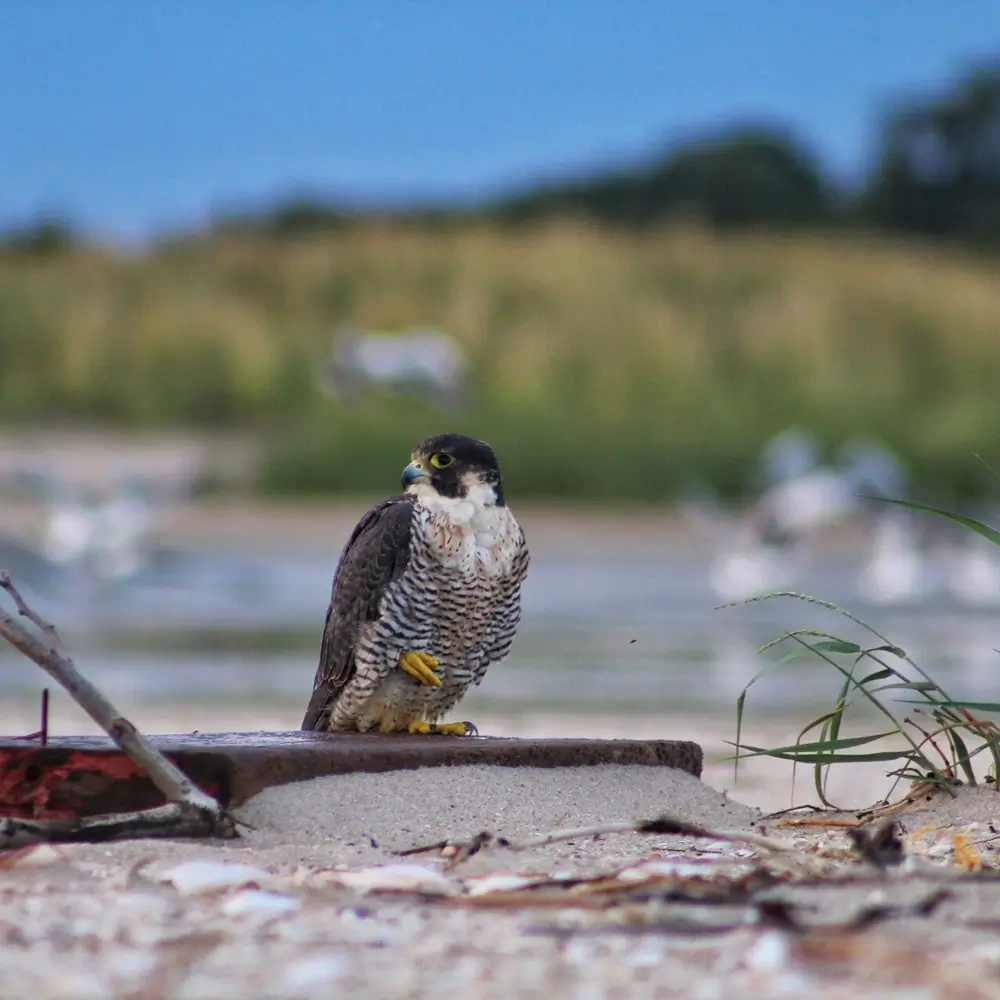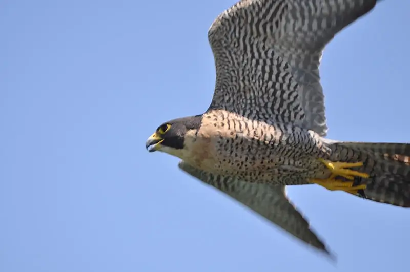The peregrine falcon is known to mostly breed in the White Mountains of New Hampshire and north. It can also be seen in the state in October during its fall migration.