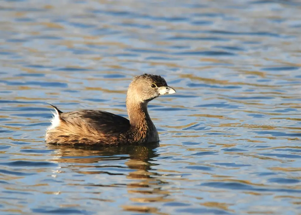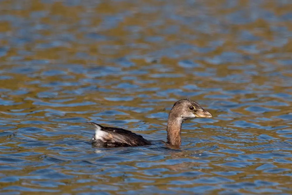 The pied-billed grebe is an excellent swimmer and diver. It often dives to evade predators. In fact, another name for the pied-billed grebe is the Hell-diver.