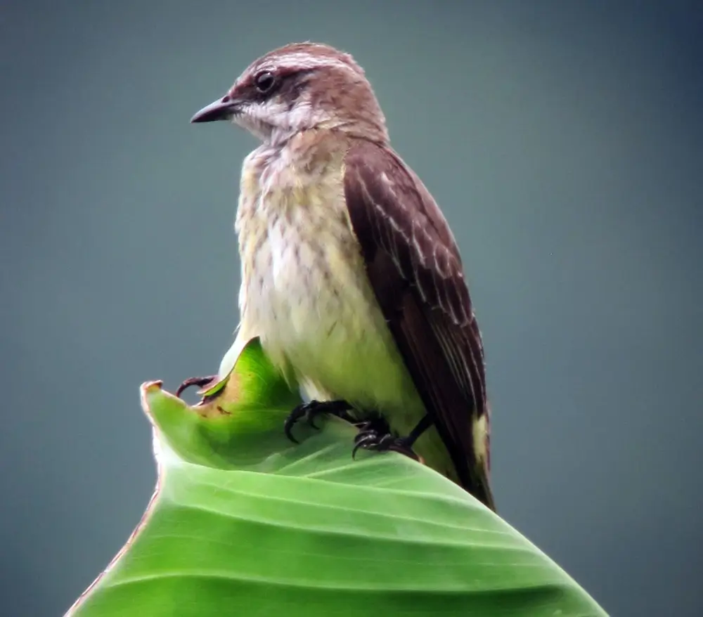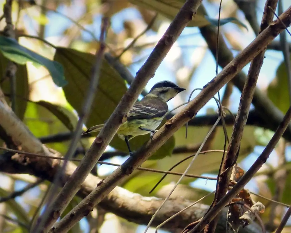 Piratic flycatchers travel in pairs and are hard to spot since they spend most of their time high in the tree tops.