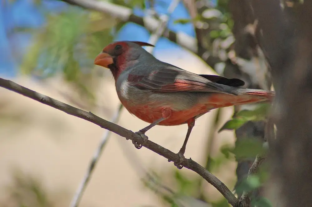The pyrrhuloxia is nonmigratory, but it sometimes strays from its territories. In the winter, it may forage for food in huge flocks containing hundreds of birds.