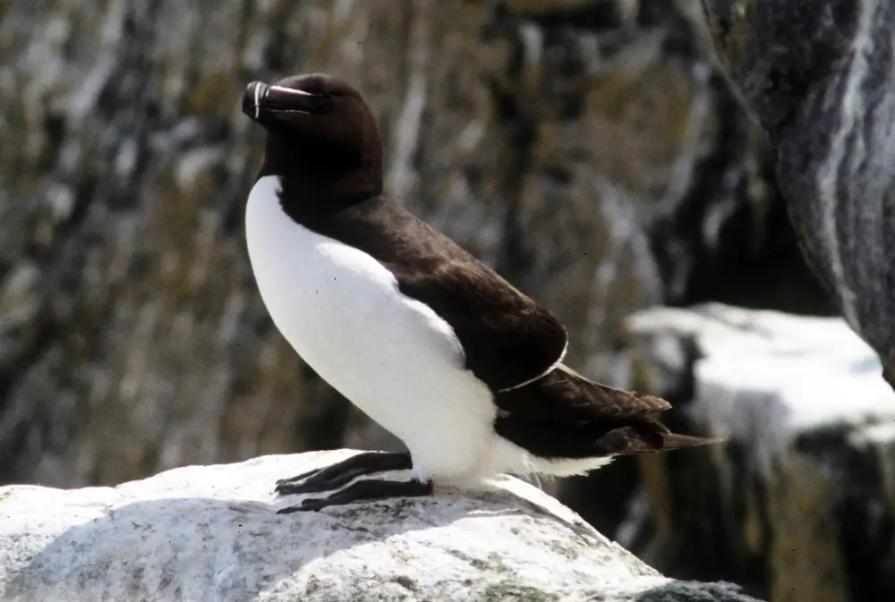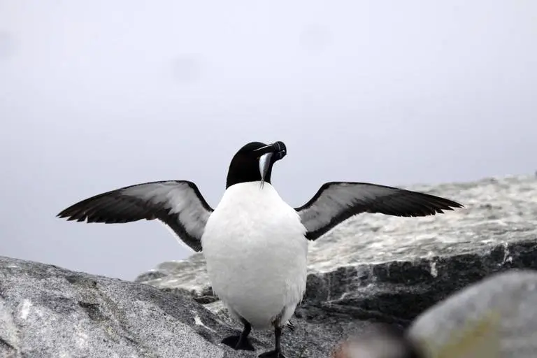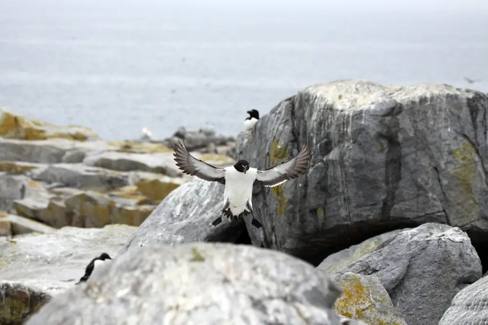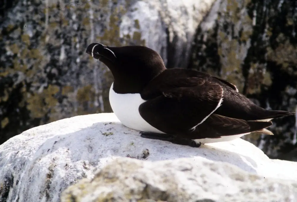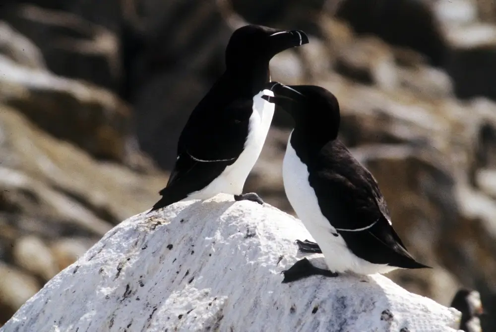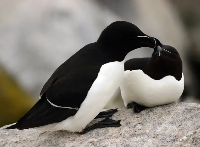 The razorbill nests in colonies on cliffs or islands among the boulders and rocks. The female razorbill lays a single egg on the ground or on rocks. Incubation takes about 5 weeks.