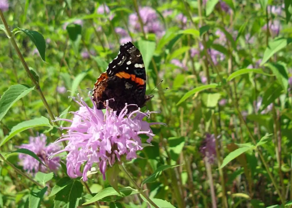 The red admiral is found in moist woods and forests, yards, parks, meadows, marshes, and fields.