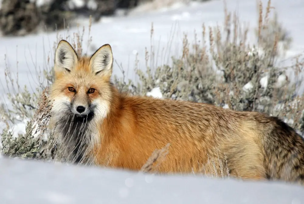 The red fox will continue to hunt even when it is full. It stores extra food under leaves, snow, or dirt.