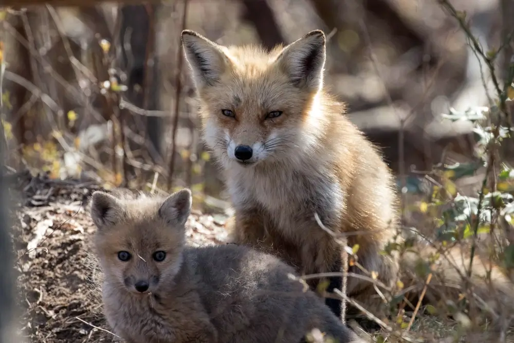 The kits start playing outside the den when they are about a month old. The mother begins feeding her kits regurgitated food, but eventually, she will bring them live prey to “play” with and eat. Playing with live prey helps the young kits develop the skills they will need for hunting. The kits leave their mother when they are about seven months old.