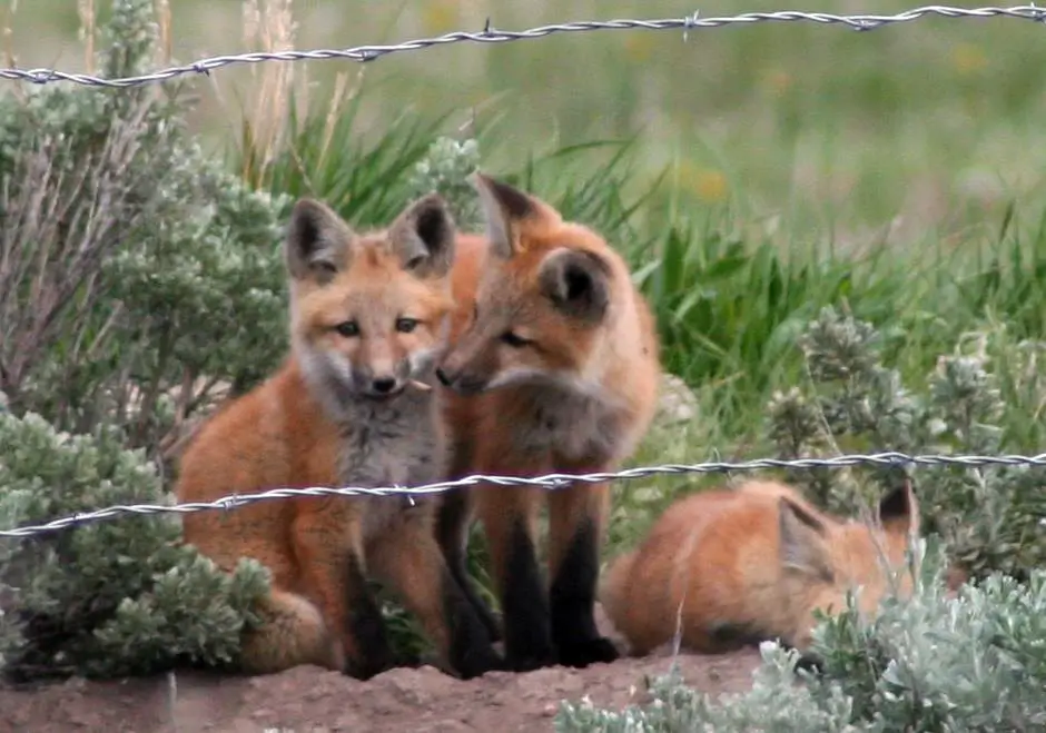 The red fox mates from January through March. The female makes one or more dens right after mating. The extra dens are used if the original den is disturbed. A little less than two months after mating, the female gives birth to a litter of between one and ten kits. The male brings the female food while she is caring for the kits.