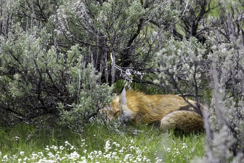 Except for breeding females, the red fox does not usually use a den. Sometimes it sleeps in the open, wrapping its bushy tail around its nose to stay warm. When it does use a den, it usually finds an abandoned rabbit or marmot burrow rather than digging its own.