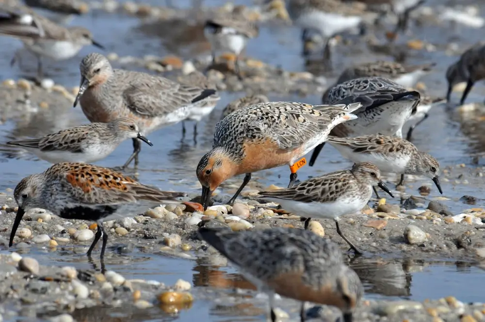 The Rufa Red Knot (Calidris canutus rufa), found in the eastern U.S. suffered a major population decline in the 2000s and is now a threatened species in the U.S.