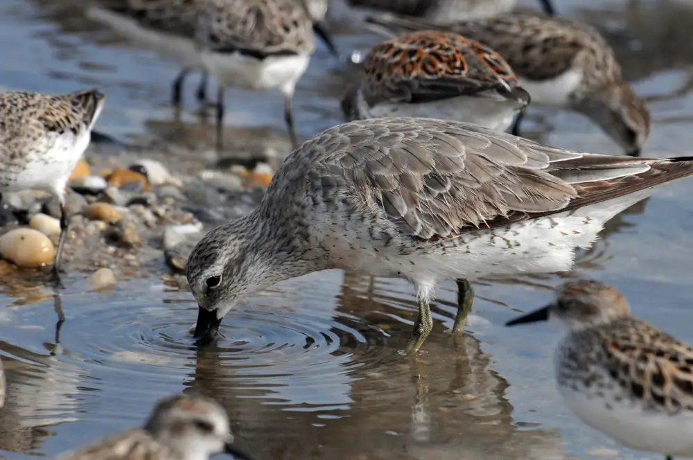 The red knot subspecies, the rufa red knot (Calidris canutus rufa), is found on tidal mudflats in coastal New Hampshire and on the Isles of Shoals.
