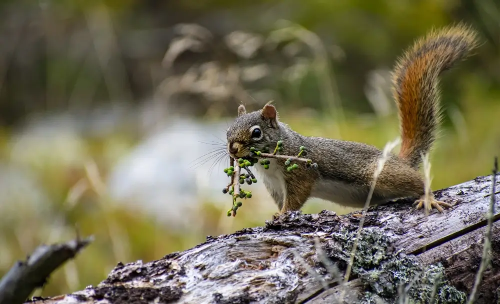 The red squirrel is found in coniferous, deciduous, and mixed coniferous-deciduous forests.