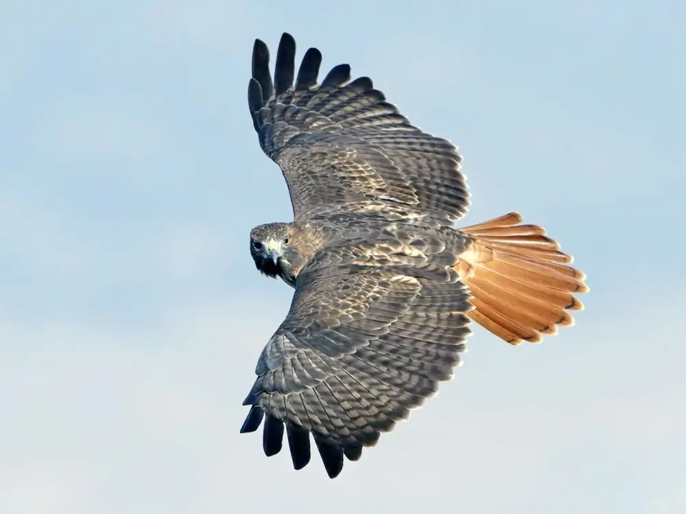 The red-tailed hawk is 18-26 inches (45.7-66 cm) in length with a wingspan of 3.6-4.3 feet (1.1-1.3 m). It weighs 2-4 pounds (0.91-1.8 kg).
