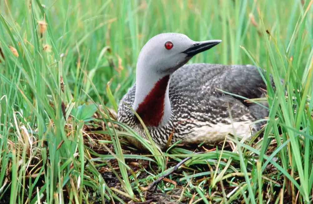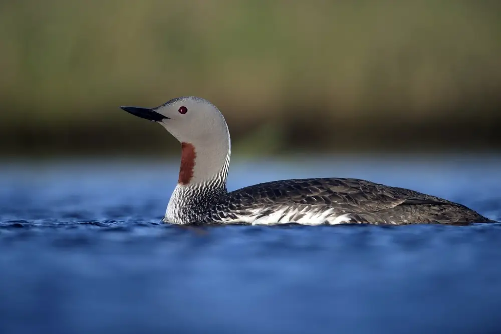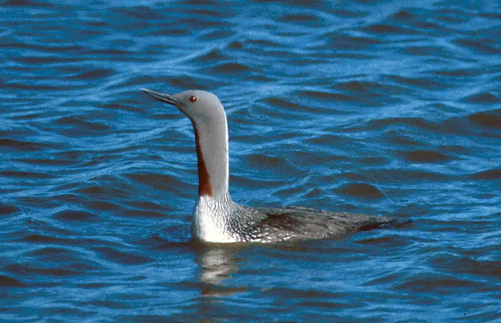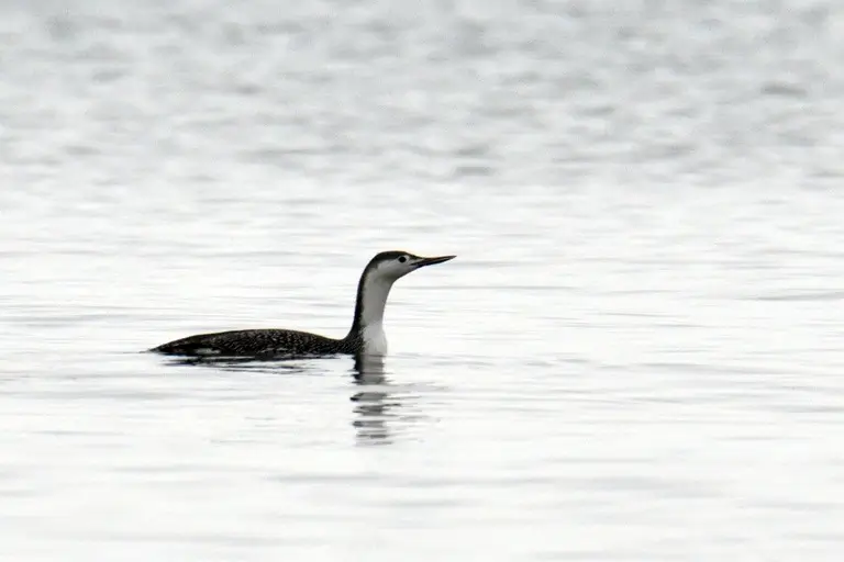 During winter, the red-throated loon’s head turns white, and the red patch goes away for the season.