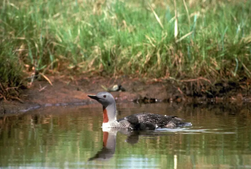 Unlike the common loon, the red-throated loon can take off directly from land or water and does not need a runway.