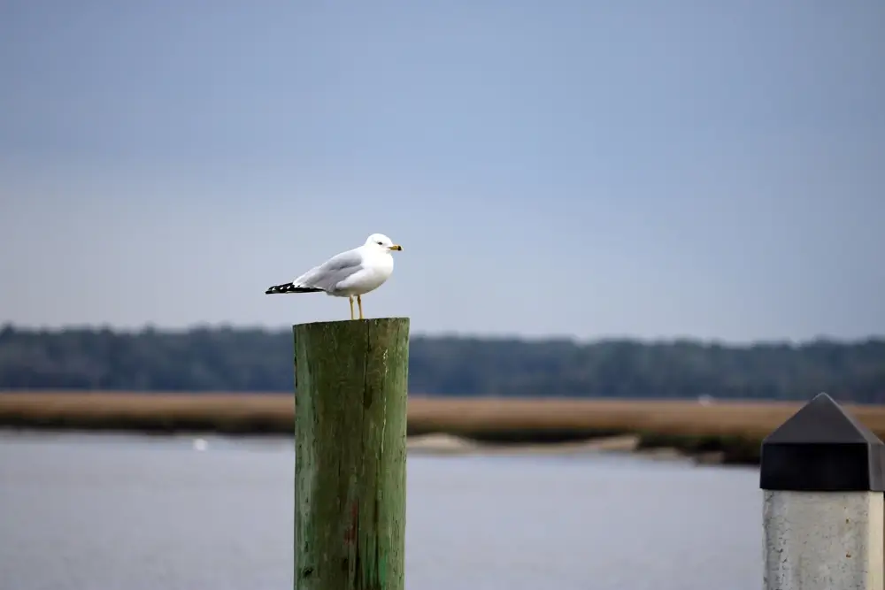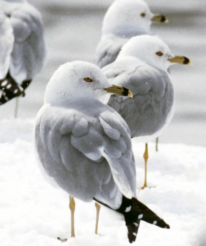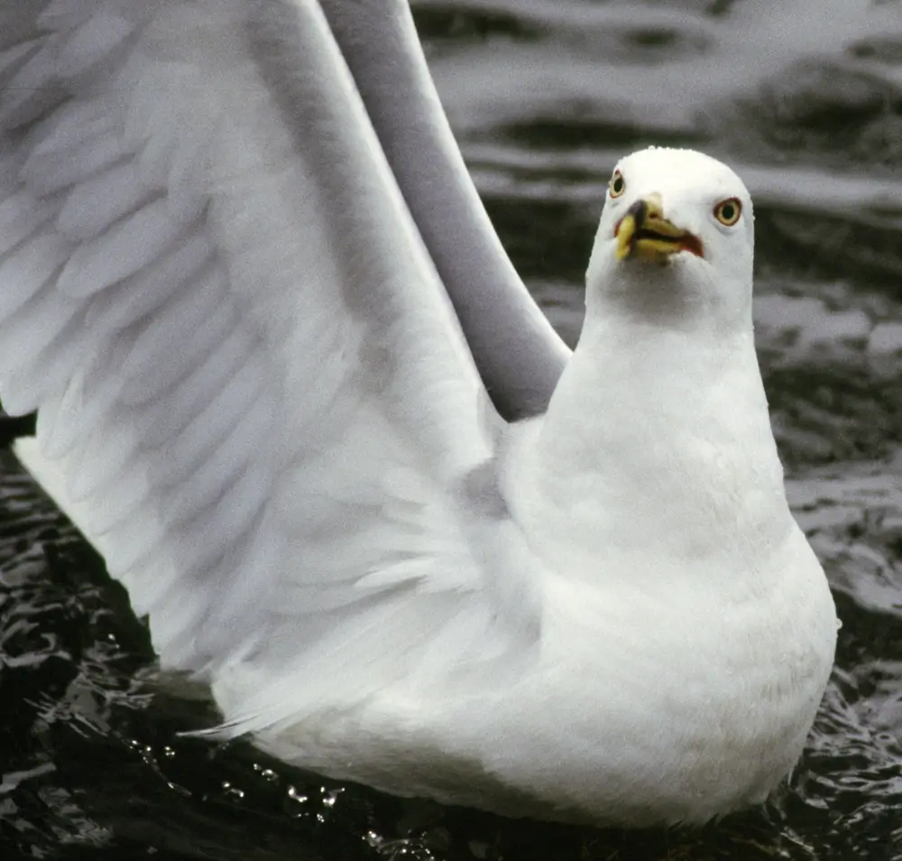 The ring-billed gull makes its home on lakes and rivers. It may move to the ocean in the winter.
