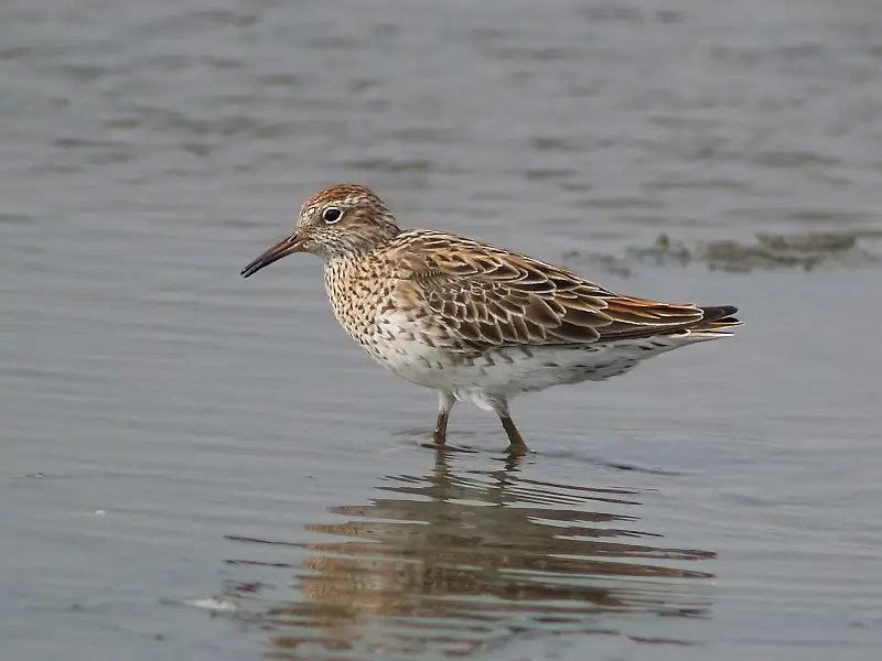 The sharp-tailed sandpiper breeds on the Siberian tundra and winters in Australia and New Zealand.