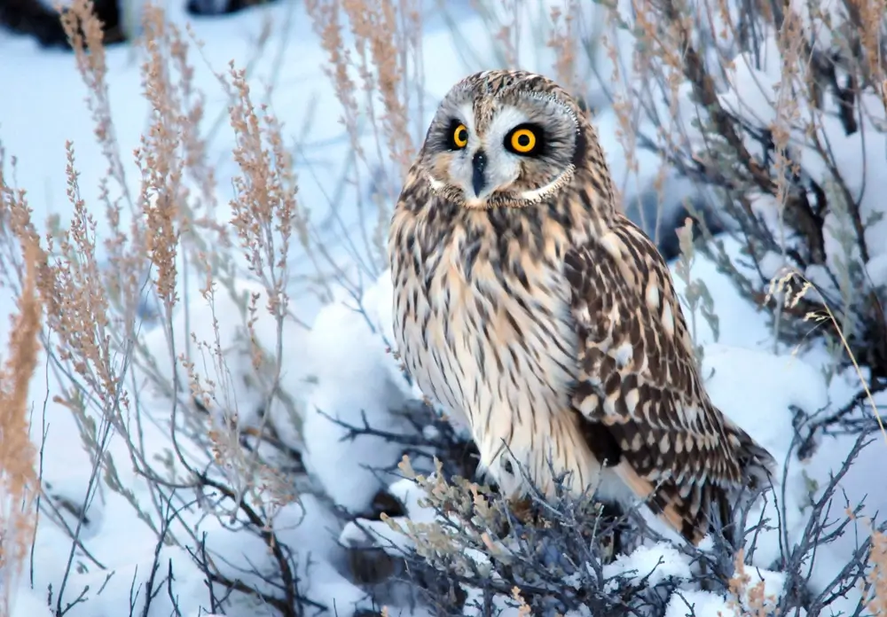 The short-eared owl has incredible hearing. It can locate and grab its prey from under thick grass or snow using only its ears.