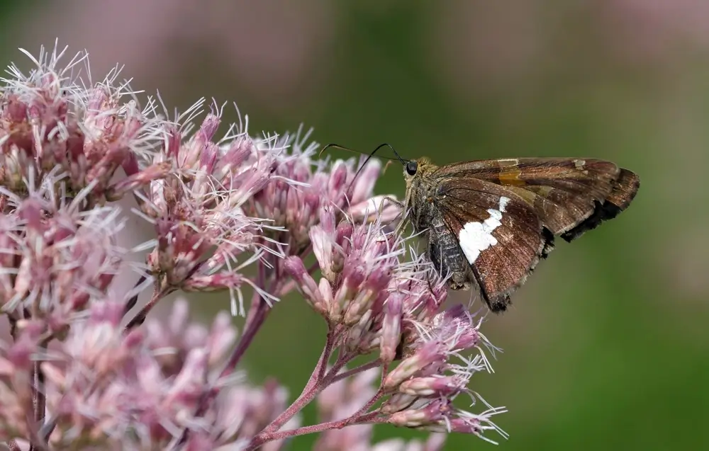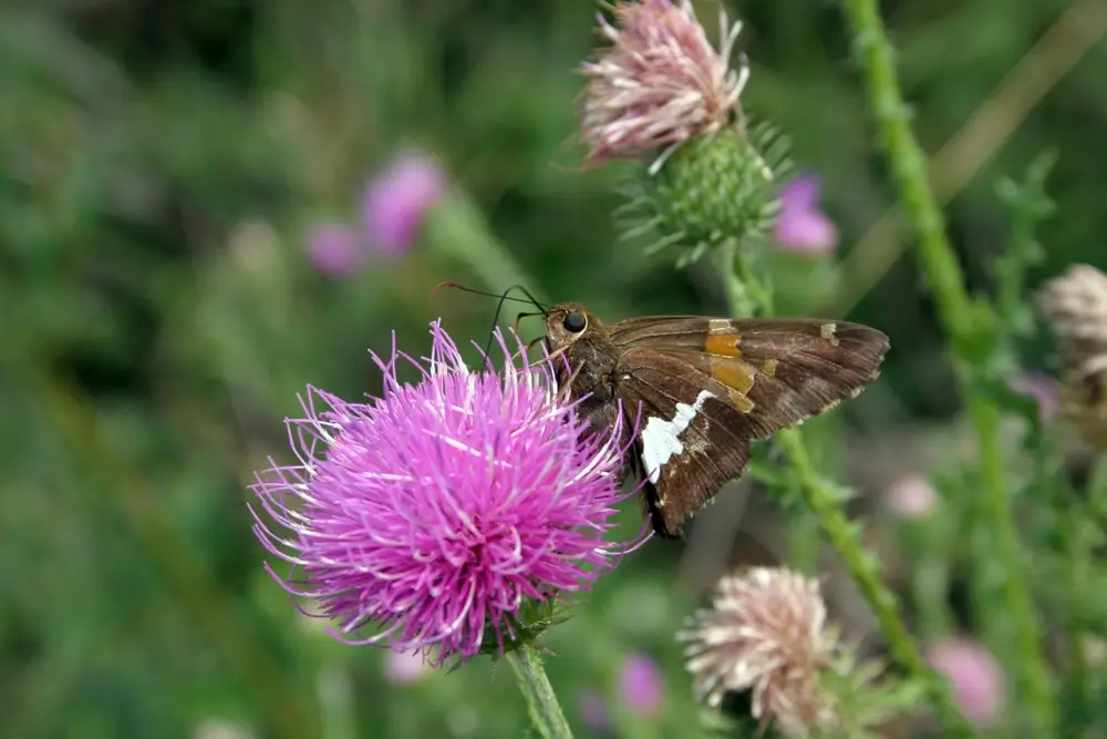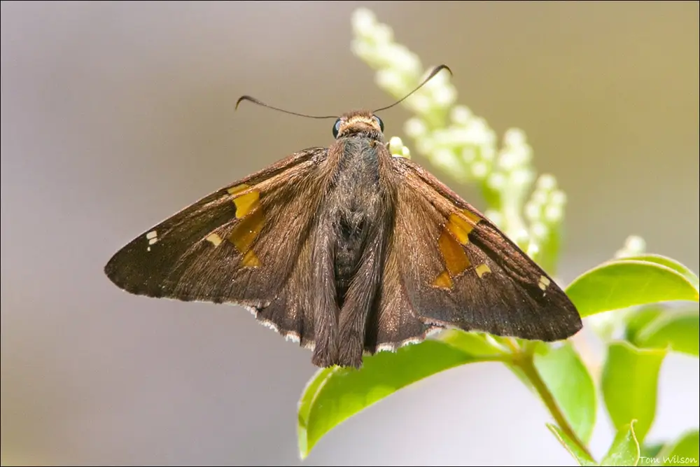 The silver-spotted skipper is found in open woodlands and brushy areas.