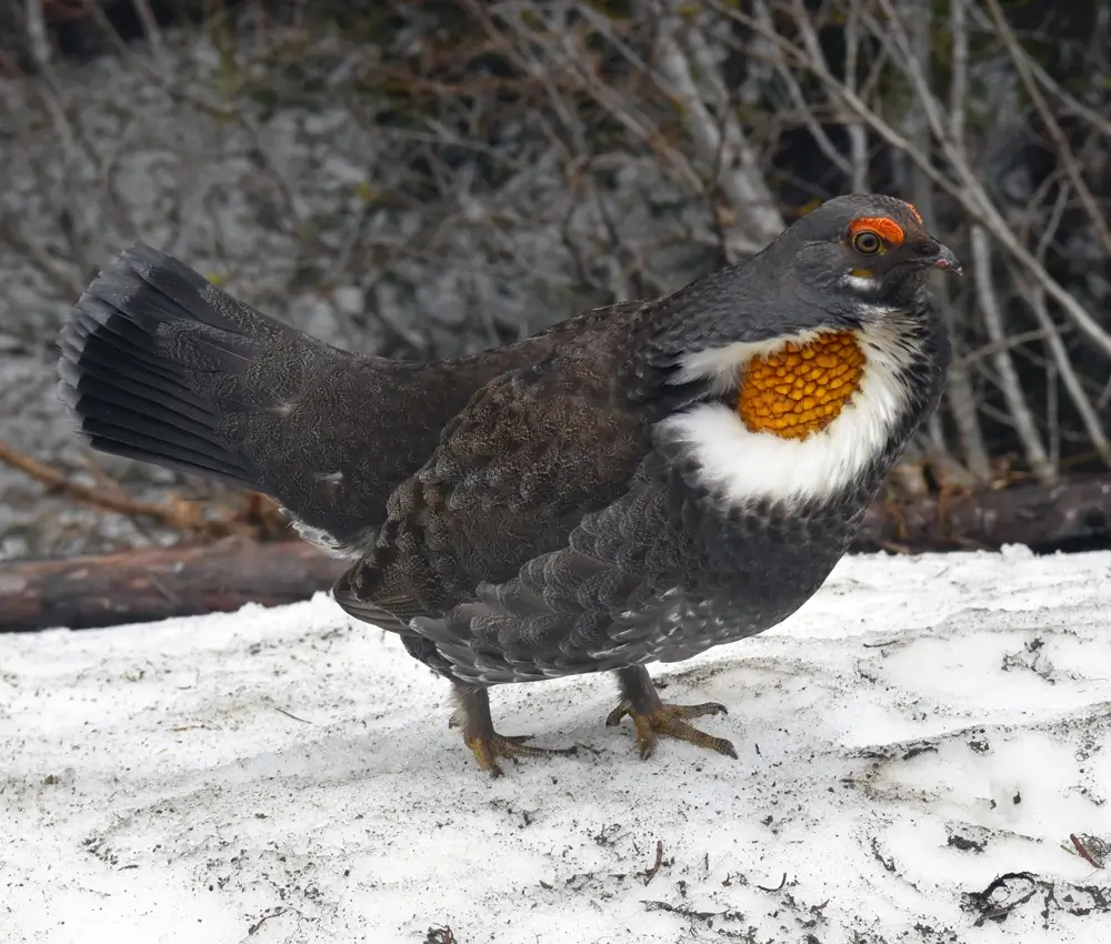 The sooty grouse is found in bush areas in coastal rainforests, burned areas, mountain forests, and subalpine forest clearings.