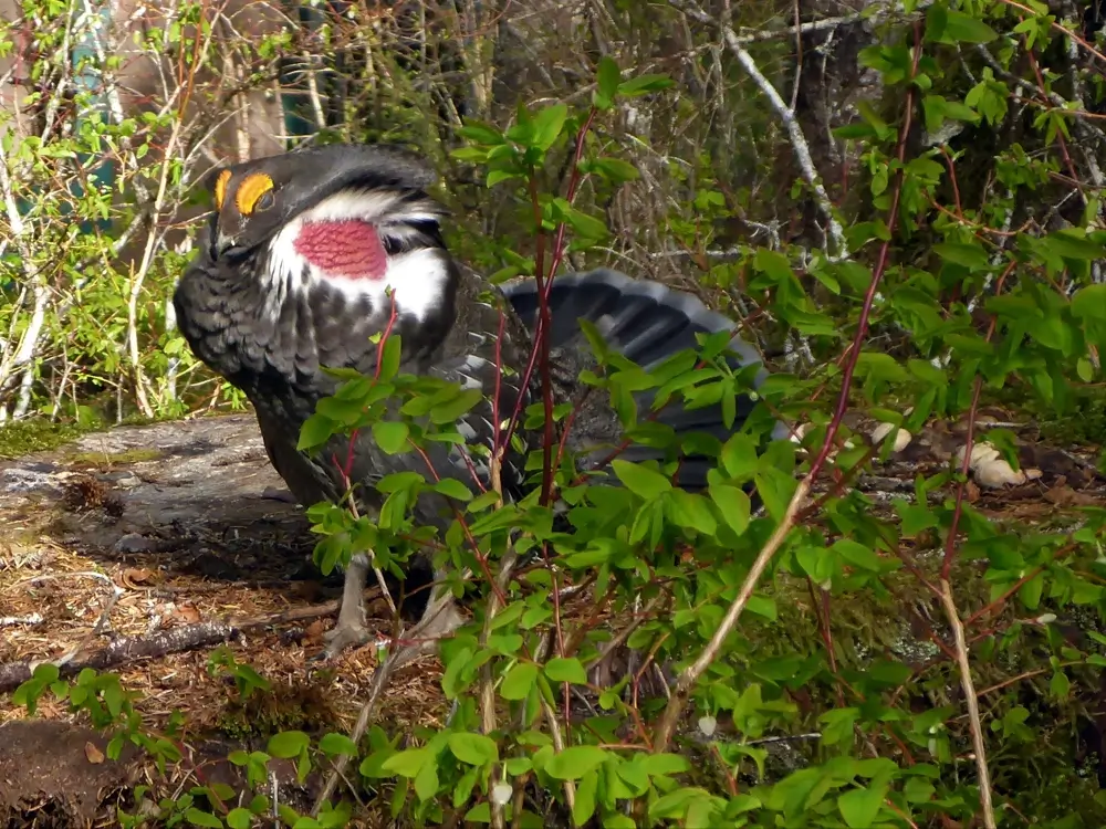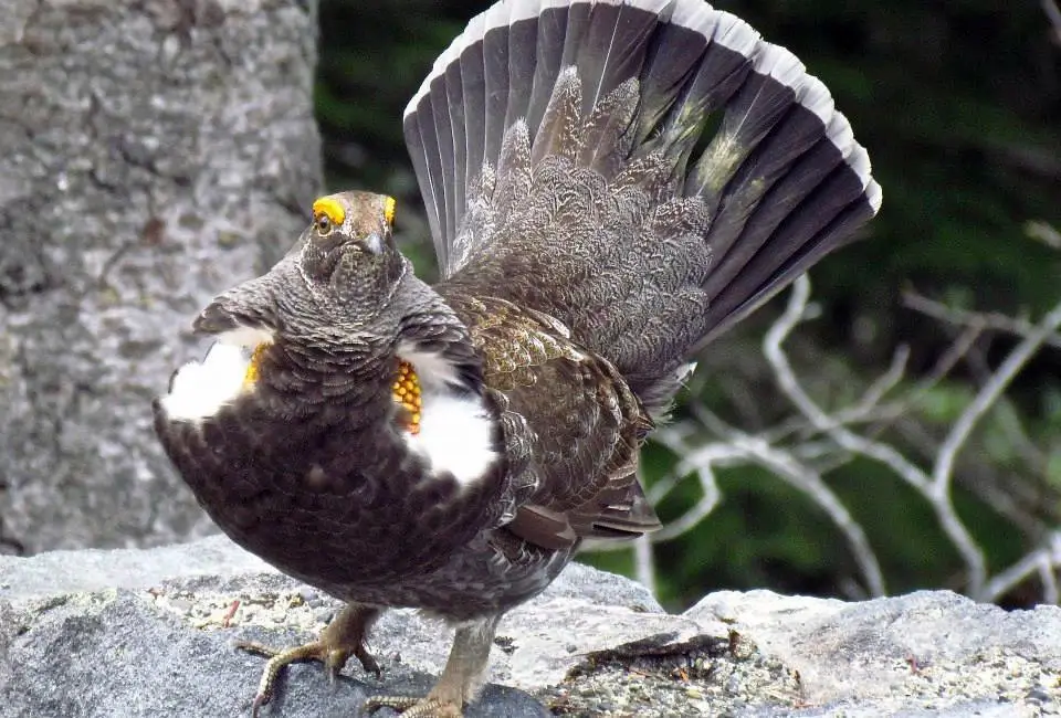 Male sooty grouse in the Rocky Mountains have a red neck sac instead of a yellow one.