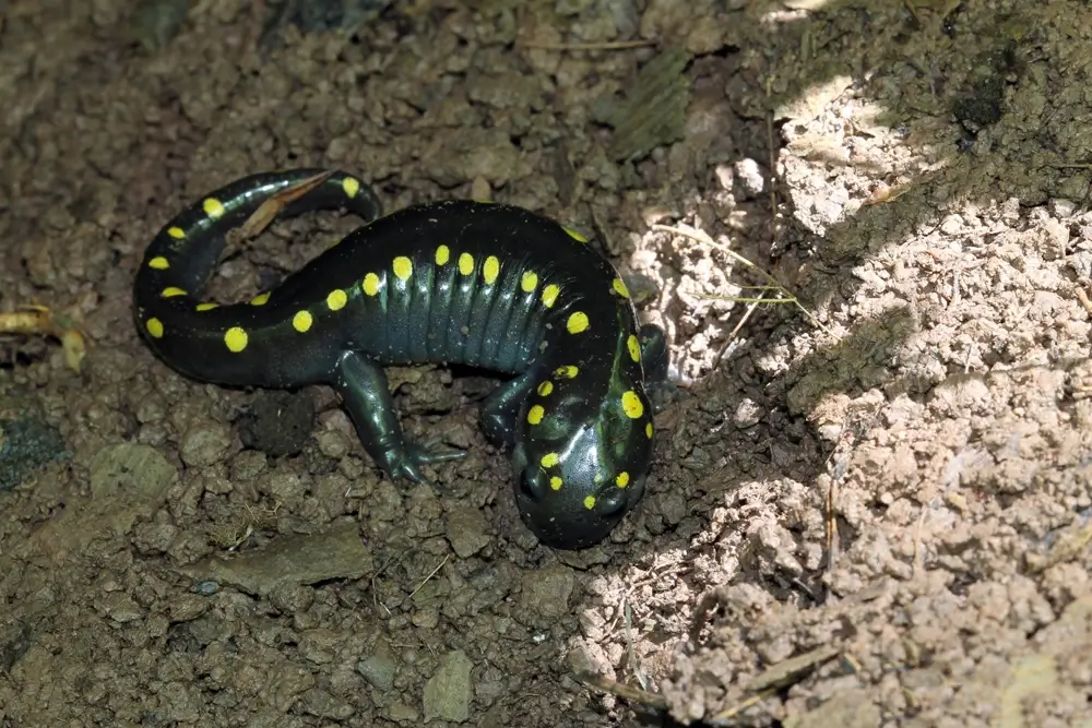 The spotted salamander spends most of its time underground. It needs areas with soil that is easy to burrow into.
