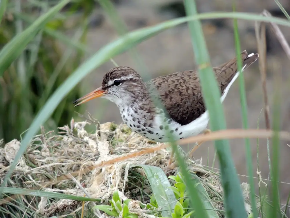 Unlike most species of birds, the female spotted sandpiper reaches the breeding range before the male and selects and defends a territory. She then tries to attract a male.