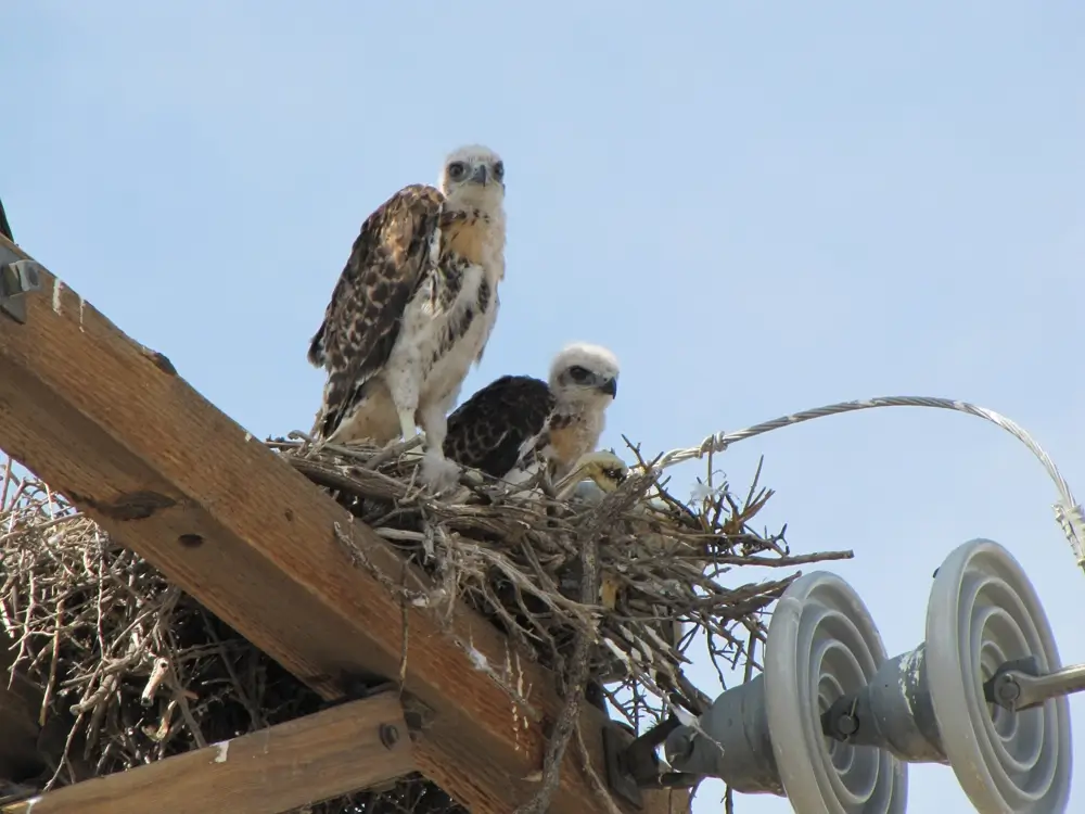 The male Swainson’s hawk arrives at the breeding territory first and selects a site and builds a nest of sticks in a tree, bush, or on the ground.