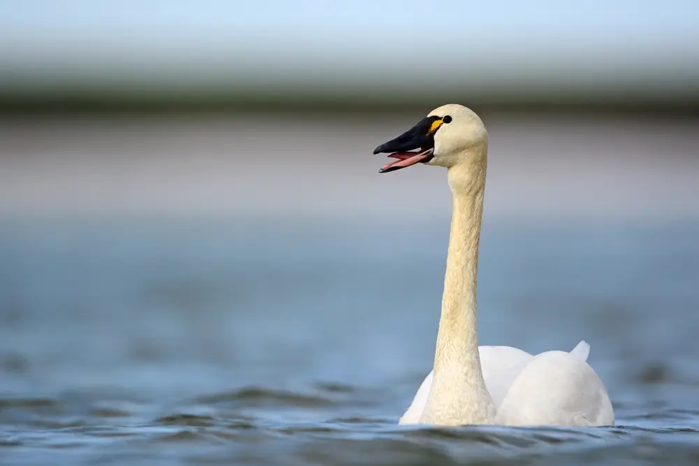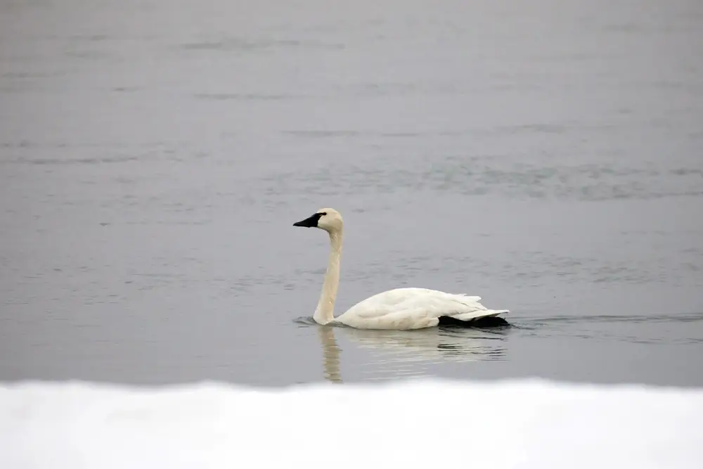The tundra swan is the only swan species native to the eastern U.S., and unlike the mute swan, which is an introduced species, it holds its neck up straight when swimming.
